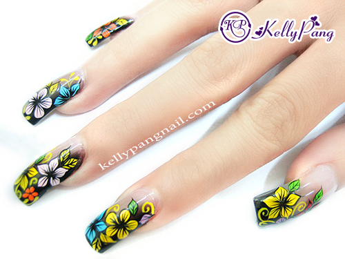 Cách Vẽ Mẫu móng Đêm hoa mùa hạ (Midnight Romance)